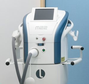 光の波長をフィルターで調整したストロボのような強い光を皮膚に当てることで、シミ、そばかす、毛細血管拡張、毛穴の開きなどを改善する器械です。IPL治療器とも呼ばれます。「フォトフェイシャル」はルミナス社の登録商標です。複数回の治療が必要ですが、ダウンタイムが少ない治療です。