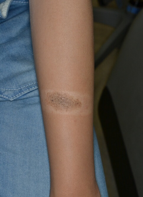 傷跡が消えることはありませんが、黒あざがある時よりも目立つということは通常ありません。