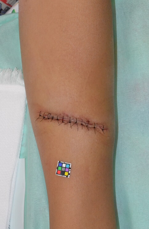 すべて切除して縫合しました。しっかりと真皮縫合をおこない、傷跡が目立つのを防ぎます。