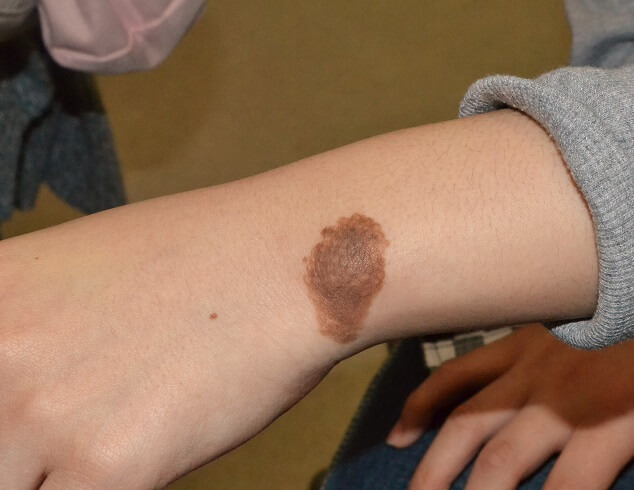 腕の色素性母斑です。色は薄いですが、発毛があります。