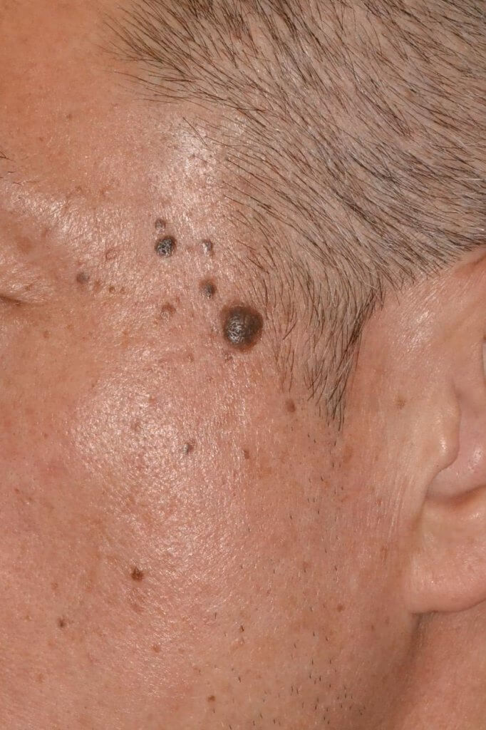 今日はこめかみや頬にできやすい茶色のできものの治療の話。