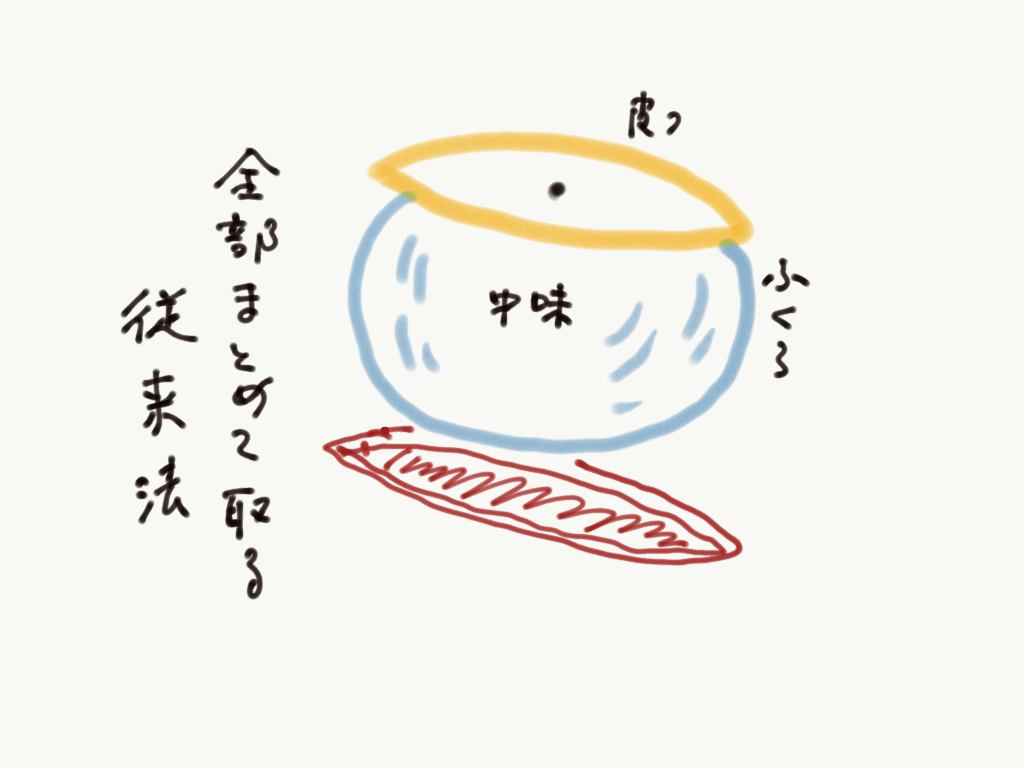 従来法では粉瘤の直径と同じぐらいの切開が必要で、粉瘤の袋を破らないように、中身が出ないようにしっかり全部取る、というのがコンセプトです。袋が破れなければ確実に完全摘出できていることになるので、再発が少ない良い方法です。