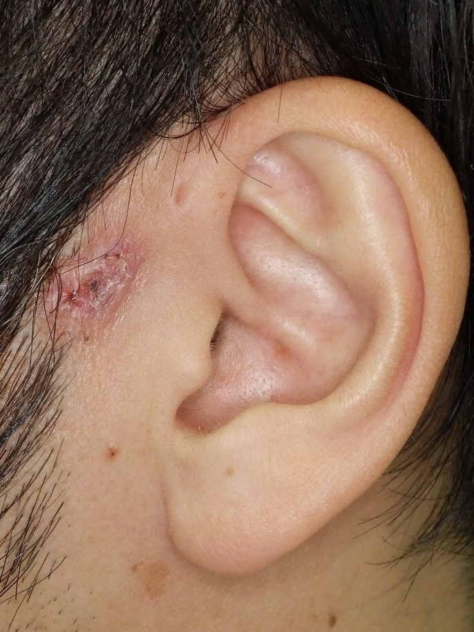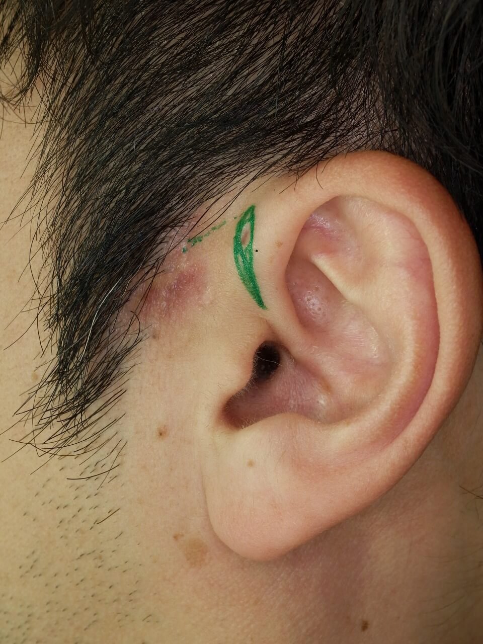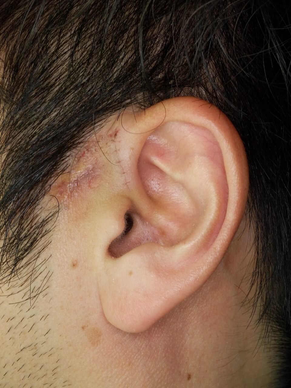 耳の前の変色した部分はとらなくても大丈夫なのですが、