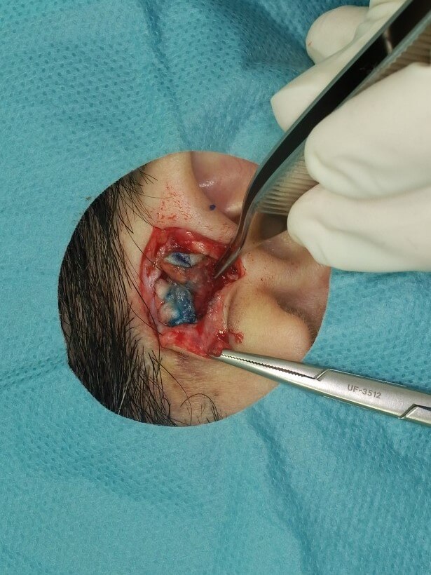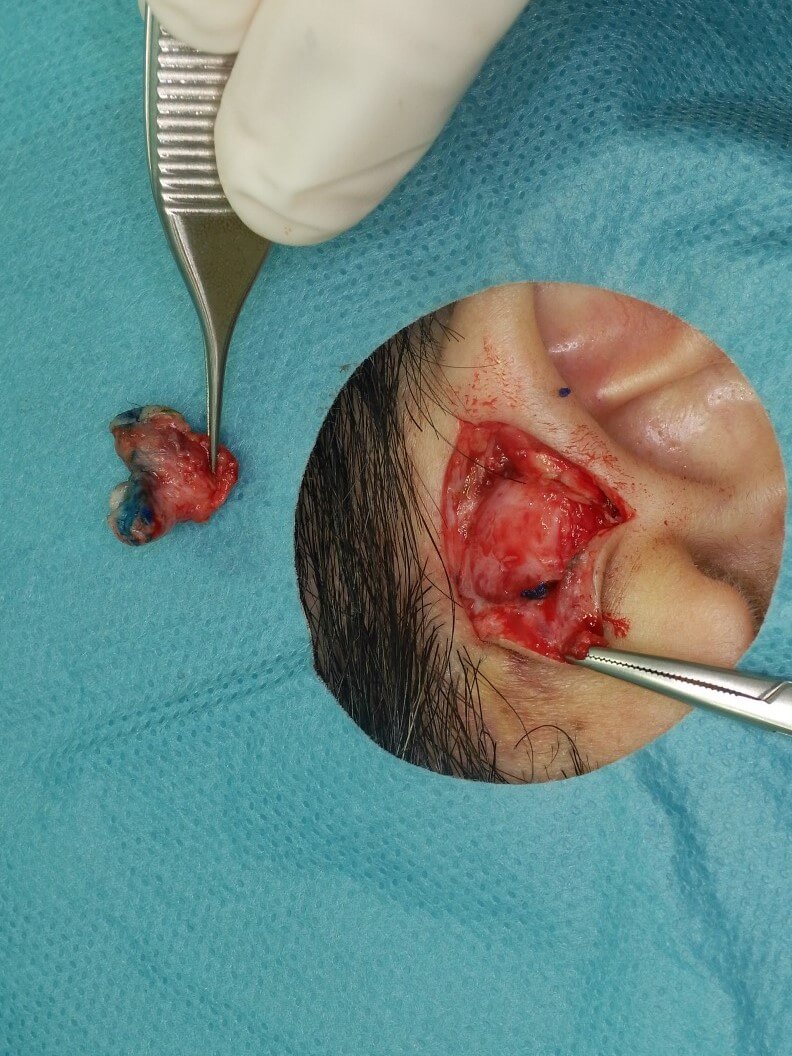 耳瘻孔からつながった汚い組織もすべて切除します。