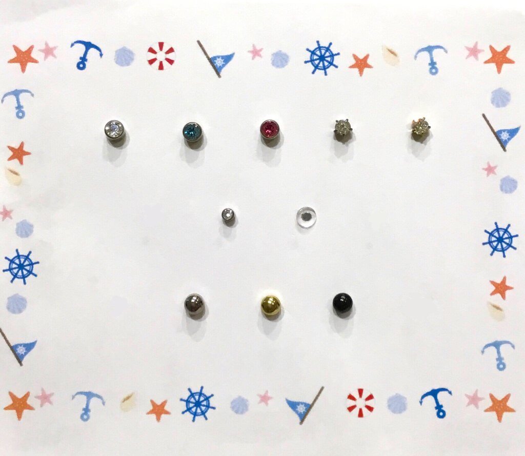 当院ではカラーストーンの着いたものや、シンプルな金や銀の丸形、お仕事や学校でも目立たない透明のものをご用意しています。