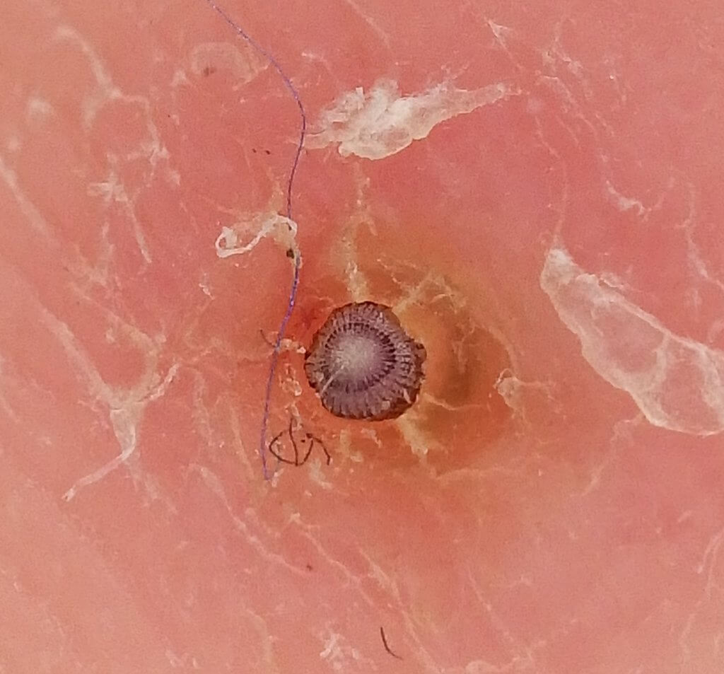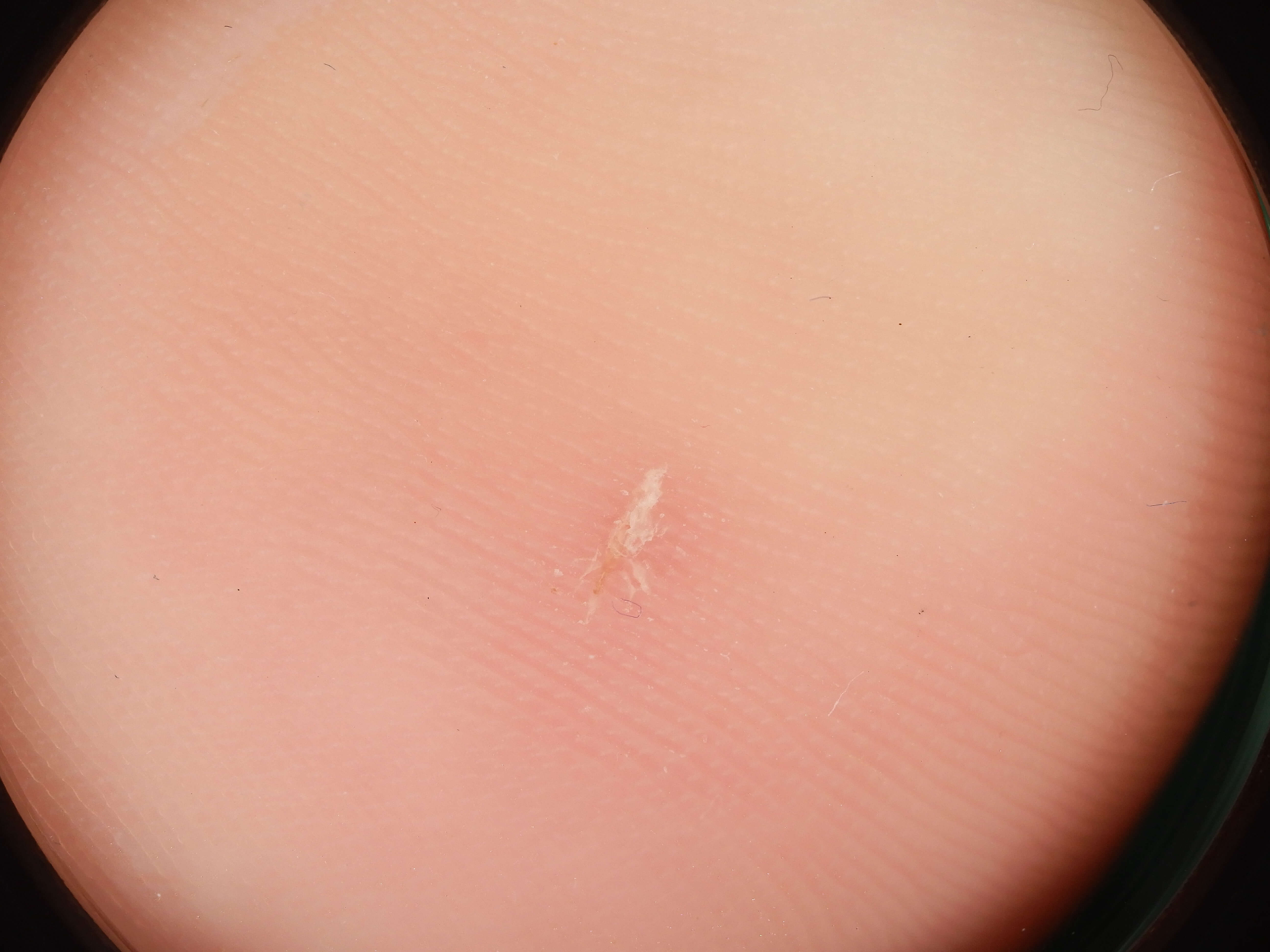 すでに老眼の私は、皮膚病変を見るときにはほとんどの方で拡大鏡(ダーモスコープ)を使用して皮膚を観察しています。