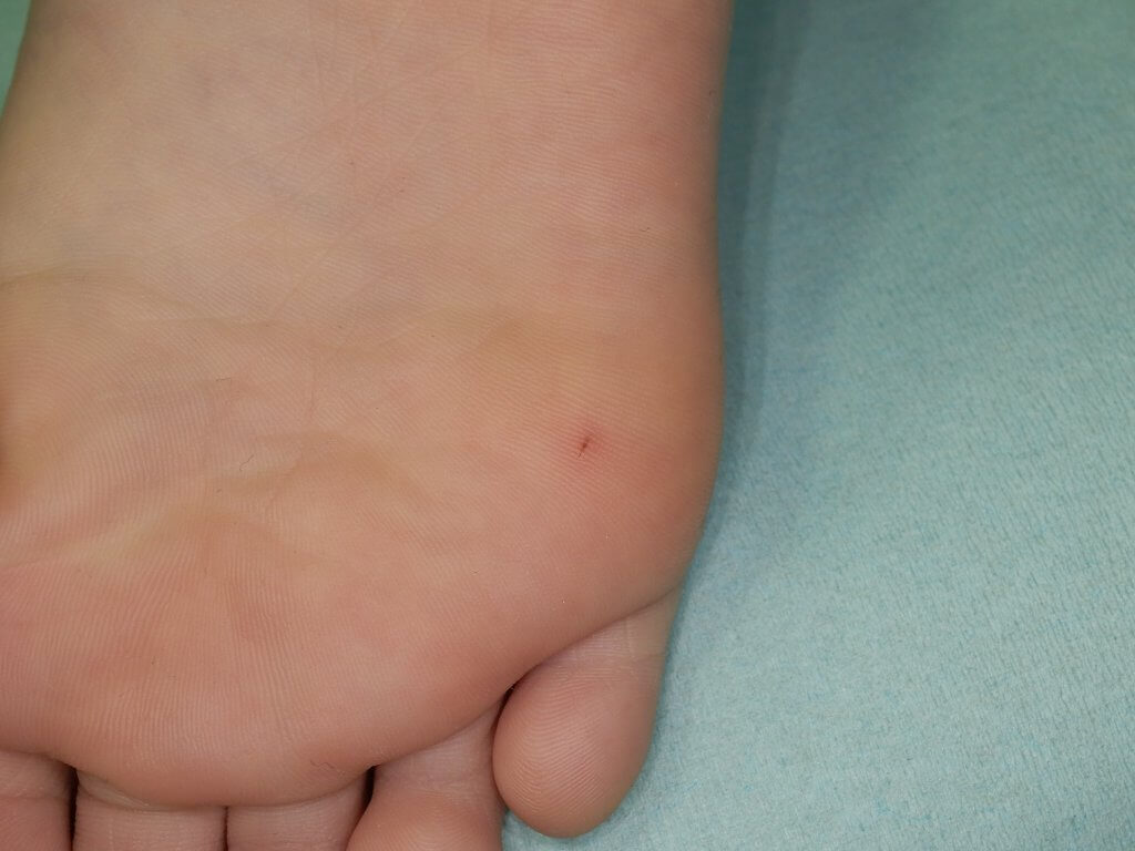 この夏、海に行って、トゲが足に刺さった、といって受診した男児がいました。