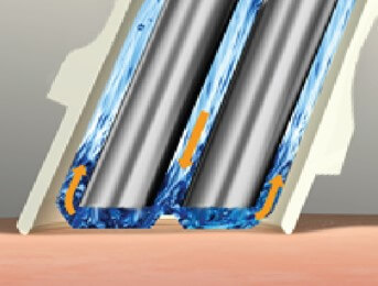 特殊な水流で洗い流しながら肌に負担がないように古い角質や毛穴に溜まった汚れを除去します。