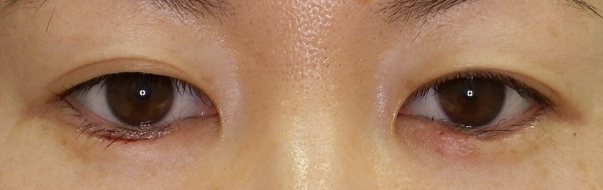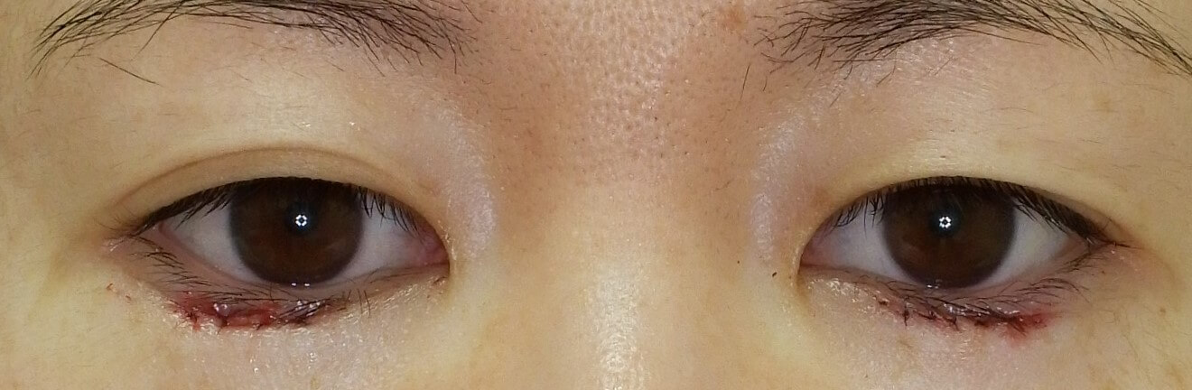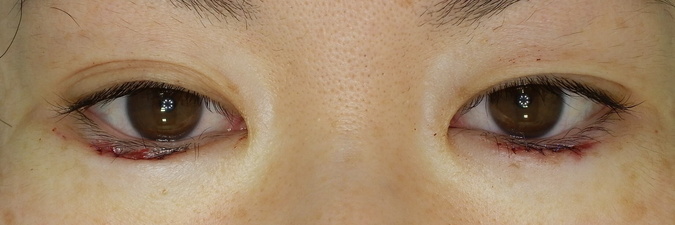 手術終了時です。睫毛の向きが矯正されています。下眼瞼が三白眼になりすぎないようにしています。