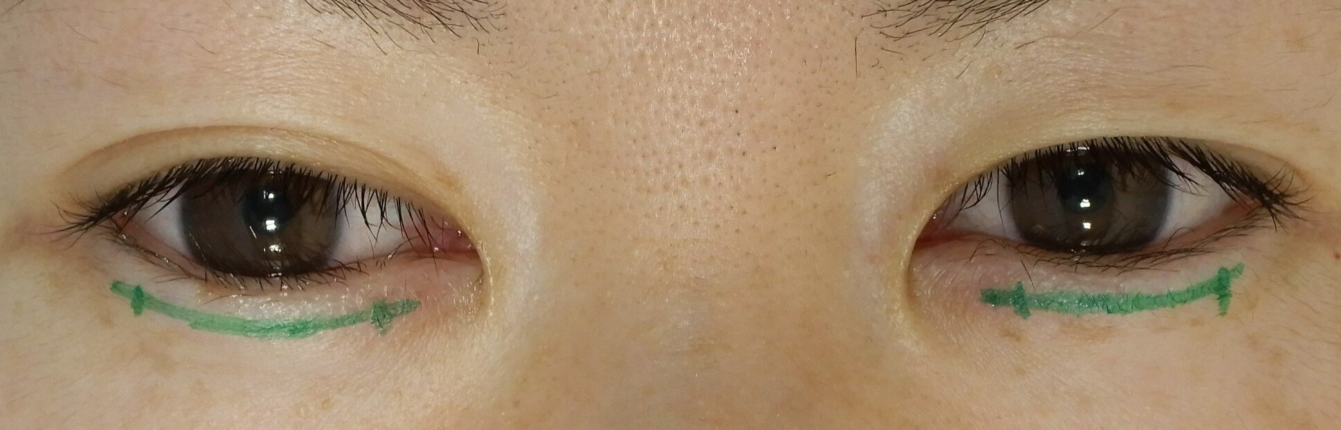 どちらも手術で治療します。今回の症例は30代女性で、生まれつきの下眼瞼の逆さまつげの方です。
